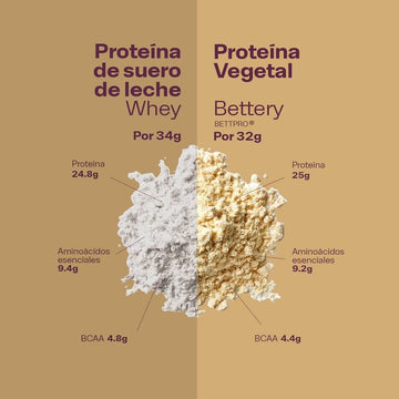 Proteína vegetal con 25 g de proteína (combinación innovadora de proteína de guisante y levadura) por porción , un perfil completo con 10g de Aminoácidos Esenciales y 5g de BCAAs 4:1:1 (Leucina:Isoleucina:Valina).